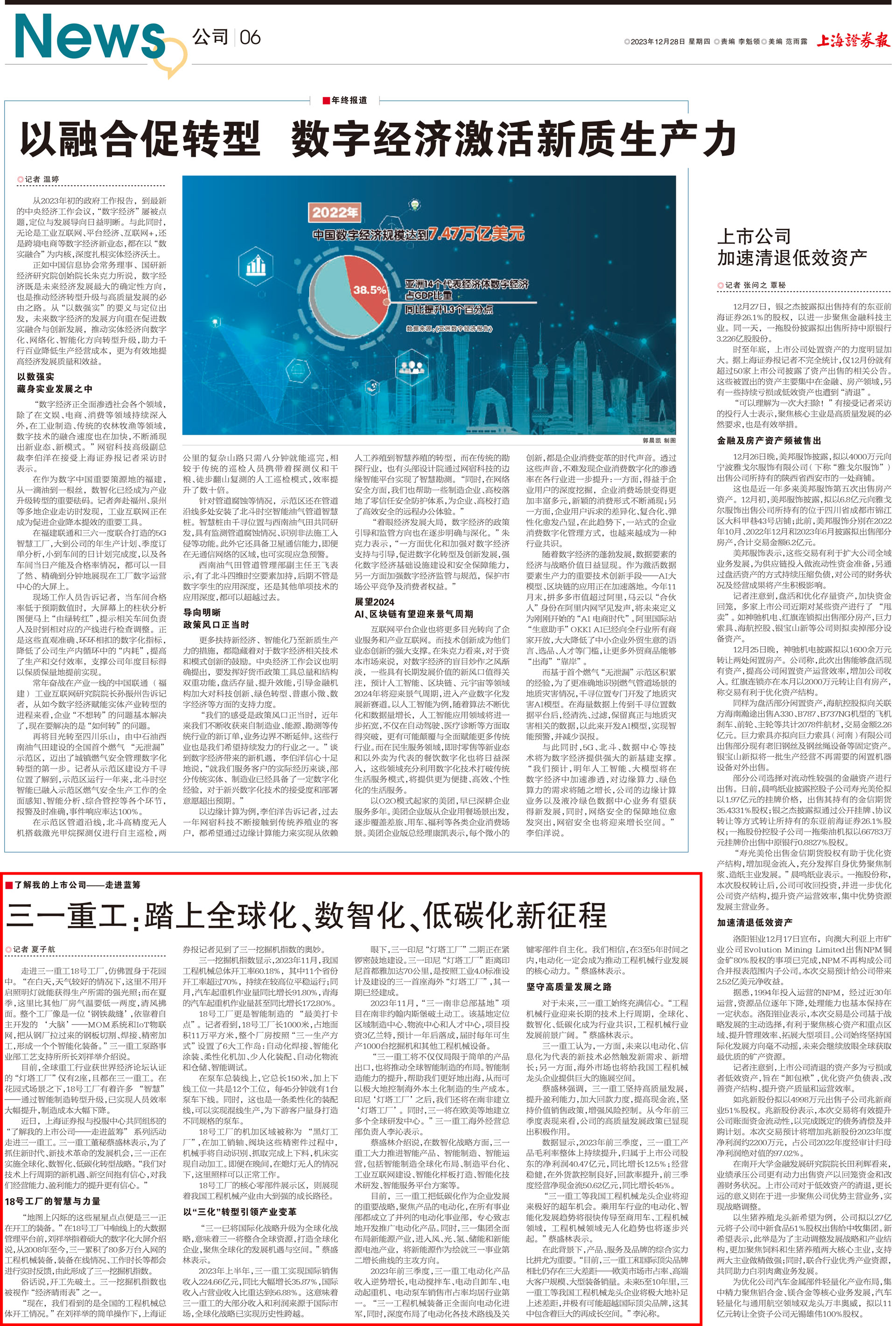 12月28日,《上海证券报》刊发《好体育投注网站重工:踏上全球化、数智化、低碳化新征程》一文。作为“了解我的上市公司——走进蓝筹”系列报道之一,聚焦好体育投注网站重工的数智化创新成果,并带领读者了解公司的发展战略与未来展望。