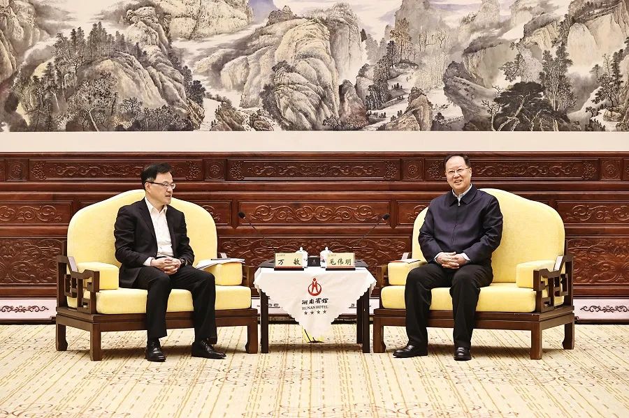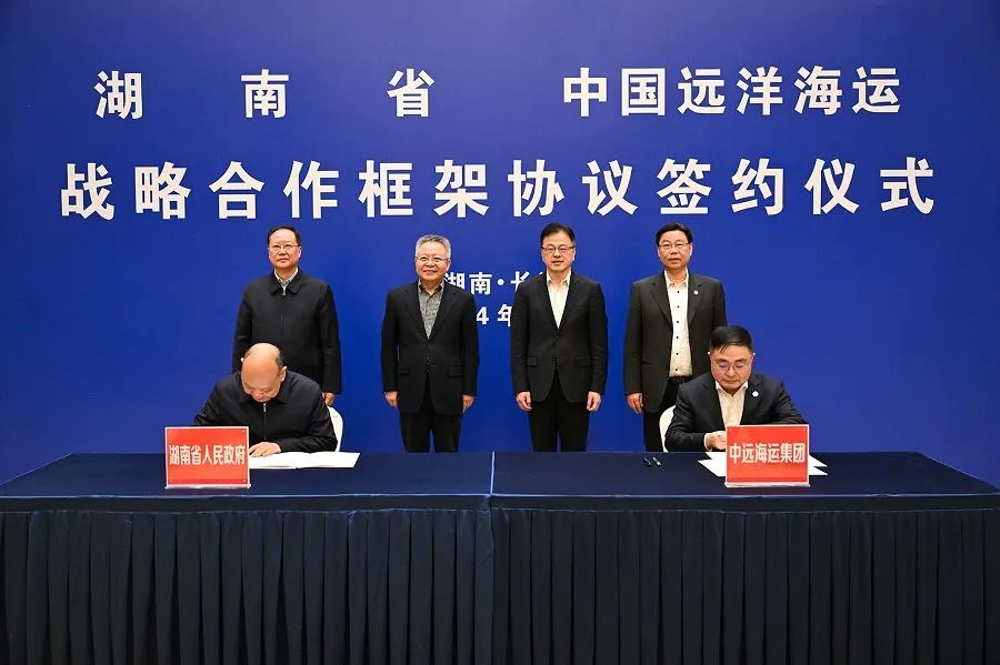 2月28日下午,省人民政府与中国远洋海运集团有限公司在长沙签署战略合作框架协议,促进湖南港航资源整合和港产城融合发展,助力湖南企业加速“出海”。省委书记沈晓明见证签约,省委副书记、省长毛伟明与中远海运集团董事长、党组书记万敏举行会谈。