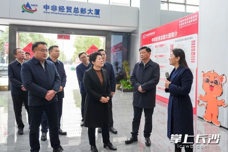 作为省级对非经贸标志性项目,中非经贸总部大厦聚集了对非经贸合作企业40余家,2024年实现对非贸易总额10亿元。吴桂英听取中非经贸合作平台建设情况介绍并走访入驻企业,指出中非经贸总部大厦是中非经贸深度合作先行区建设的重要载体,要进一步扛牢使命责任,加强对接招引,稳步扩大制度型开放,提高在长投资便利性,积极培育中非贸易、金融合作新模式新业态,以开放姿态拥抱世界、共赢发展。