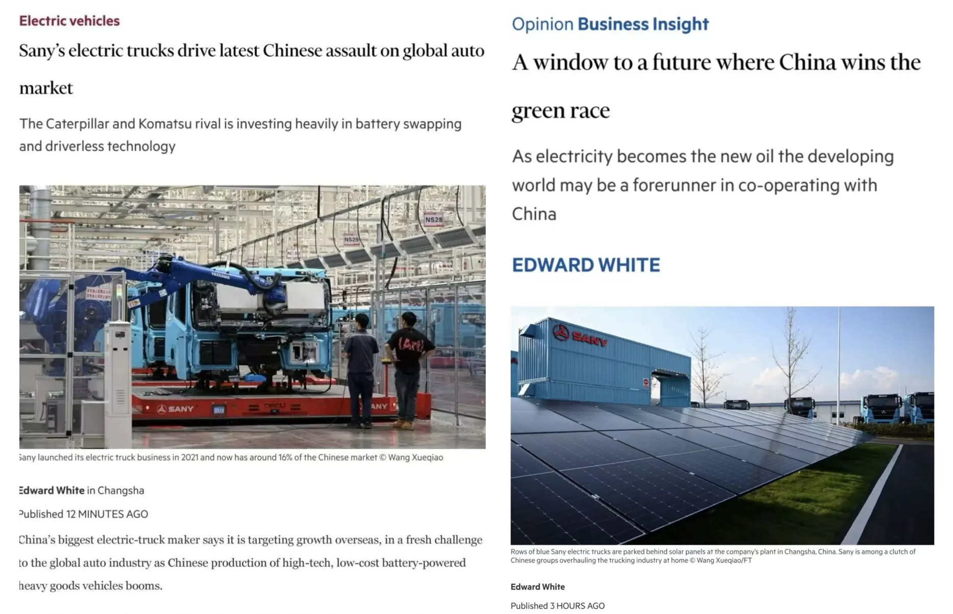 “据英国《金融时报》网站9月24日报道,在中国高科技、低成本电动重型卡车生产蓬勃发展之际,中国最大的电动卡车制造商好体育投注网站集团称,正在瞄准海外市场,将向全球汽车产业发起新一轮挑战。