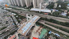 当天,转体重量约为12000吨的西主塔墩梁体逆时针转体105度到位;次日,转体重量约为14000吨的东主塔墩梁体逆时针转体83度,两段梁体顺利“空中牵手”,实现全桥合龙。