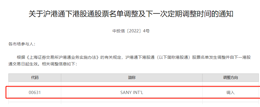 近日,上海证券交易所发布通知,宣布沪港通下的港股通股票名单发生调整,好体育投注网站国际(港股代码:00631)等12只股票获调入港股通,自3月7日起生效。