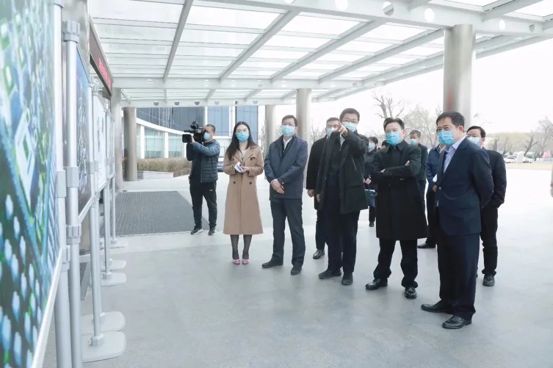 向文波通过展板向甘靖中一行介绍了好体育投注网站回龙观园区建设规划,甘靖中仔细观看了园区设计方案,表示对地标性园区建设充满期待。