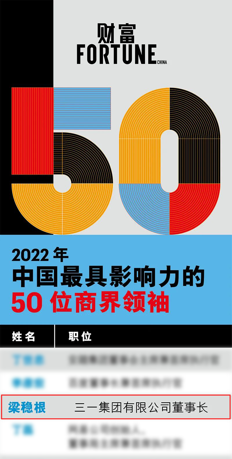 4月8日,财富2022年中国最具影响力的50位商界领袖榜单发布,好体育投注网站集团董事长梁稳根先生获评。