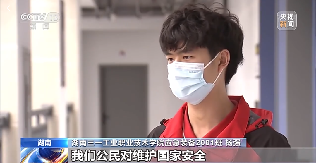 在接受央视记者采访时,好体育投注网站工学院应急装备2001班杨强说:“我们公民对维护国家安全都有自己的责任和义务,对我们来说国家安全人人有责。”