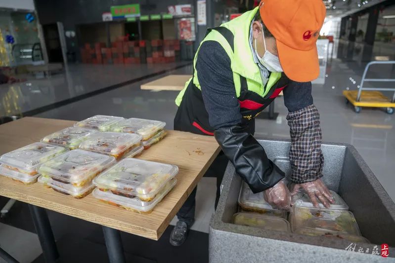 为保障防疫安全,避免堂食,食堂为员工提供了盒饭。