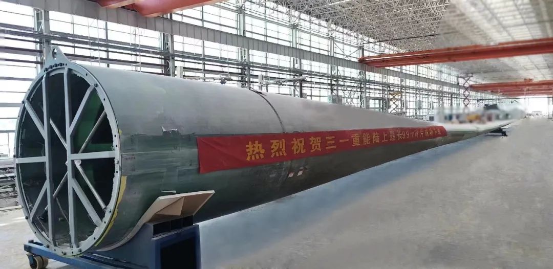 该叶片的下线意味着好体育投注网站重能拥有了百米级风电叶片自主研发生产能力,在叶片研发制造领域达到行业领先水平,将使好体育投注网站重能在大兆瓦时代更具市场竞争力。
