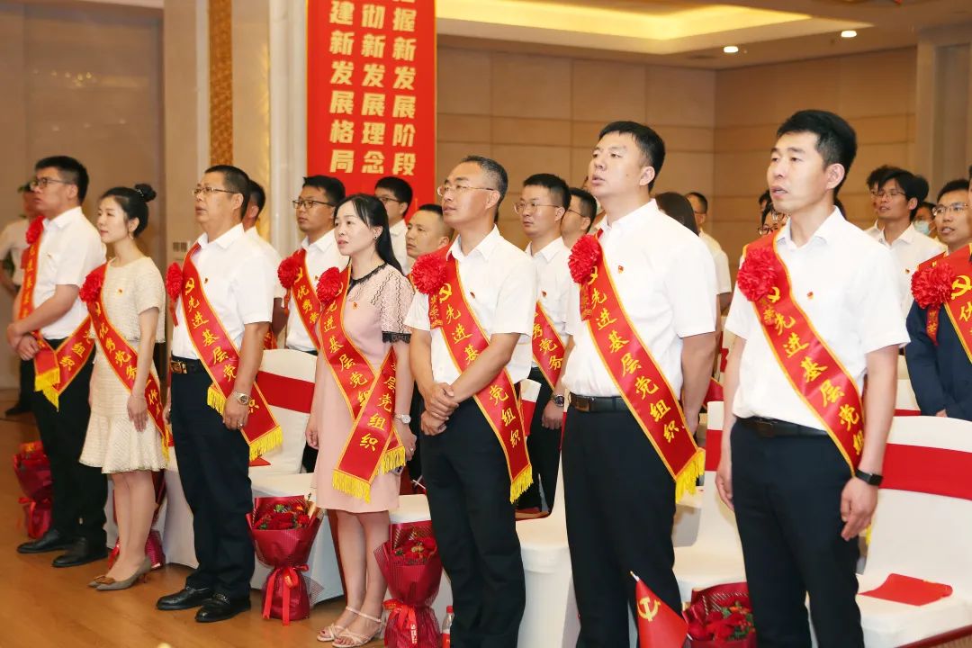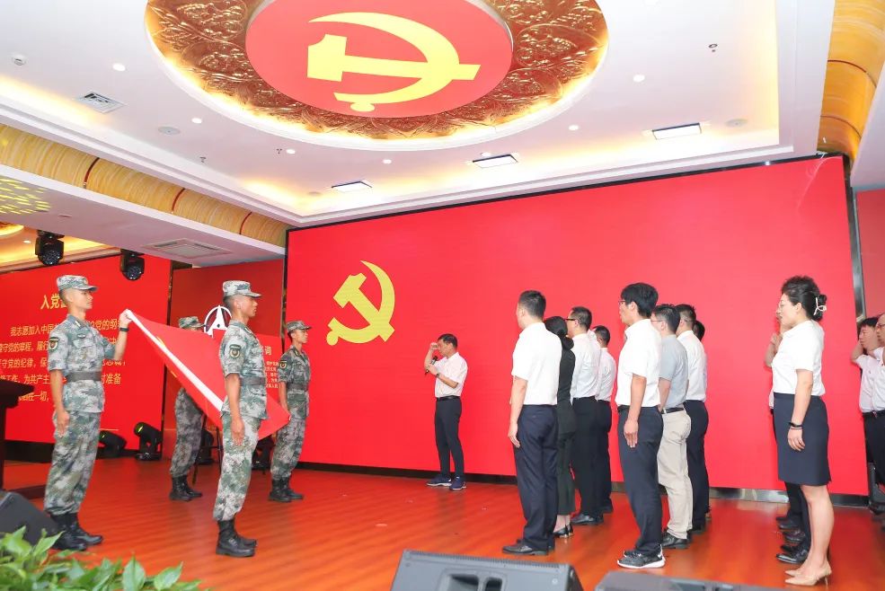 俞宏福带领2022年新发展党员代表进行入党宣誓,全体参会党员集体重温入党誓词。