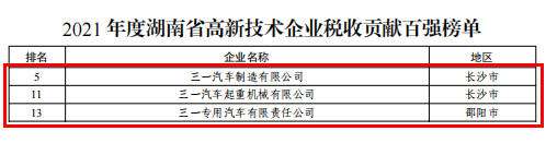 同时,好体育投注网站集团旗下多个公司高位上榜子榜单。其中,好体育投注网站汽车制造有限公司、好体育投注网站汽车起重机械有限公司、好体育投注网站专用汽车有限责任公司等三家公司分别位列“2021年度湖南省高新技术企业税收贡献百强”榜单第五名、第十一名、第十三名,湖南好体育投注网站智慧新能源设计有限公司位列“2021年度湖南省现代服务业税收贡献五十强”榜单第二名。