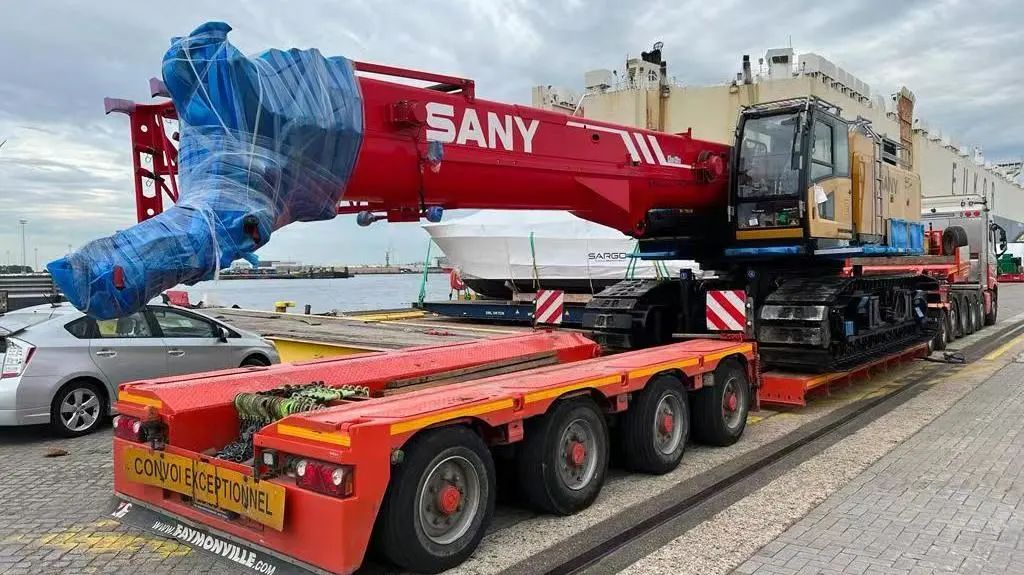 近日,经过上万公里长途运输,好体育投注网站重工自主研发的,全球第一台电动伸缩臂履带起重机SCE800TB-EV运抵荷兰,完美交付当地客户。