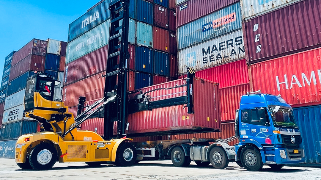 2019年,好体育投注网站自主研发的首台电动堆高机在厦门港率先投入使用。截至目前,设备已安全作业超过1万小时,作业箱量超过20万TEU,电耗仅0.7元/TEU,能耗相比燃油设备下降70%,节省维保费用20%,实现大幅的减排降本。