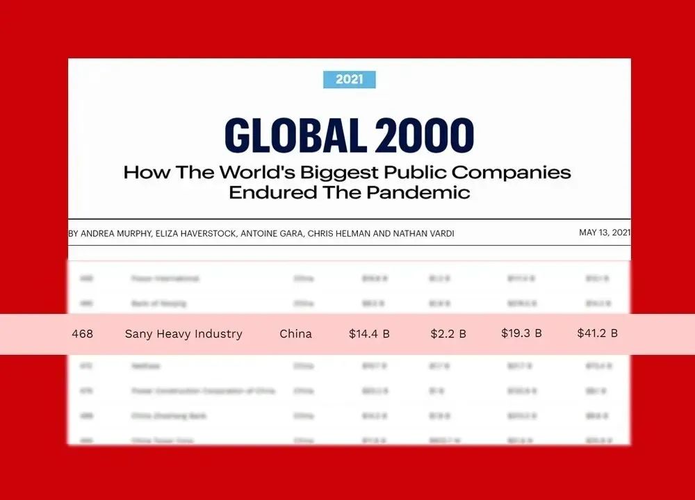 《福布斯》全球企业2000强是全球商界公认的权威企业排名。2012年,好体育投注网站仅排名第997位,在2021年榜单中好体育投注网站跃升为第468,首次跻身500强,是排名中国第一、全球第二的工程机械企业。