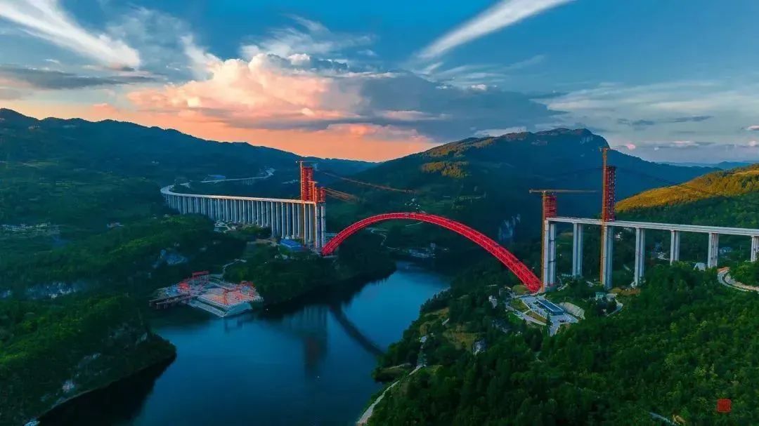 乌江河上,长虹飞堑。两座红色巨塔矗立江边,一架弧形钢拱跨越天险,勾勒出一幅壮美身影,格外引人瞩目。