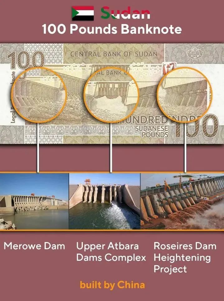 ▲苏丹面额100苏丹镑纸币——麦洛维大坝