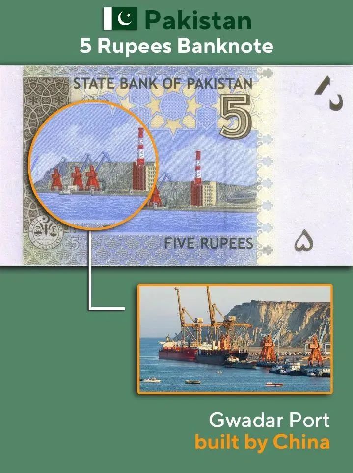 ▲巴基斯坦面额5卢比纸币——瓜达尔港