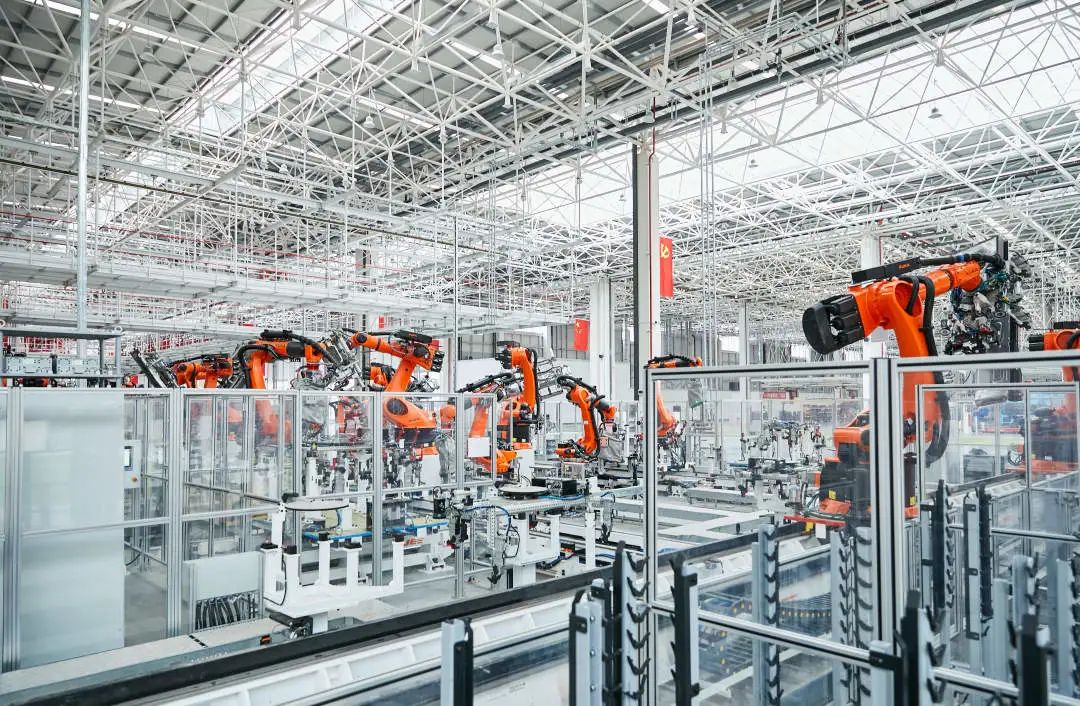 车间共拥有3个超级立体库,超700台AGV,220多个机器人,信息化效率较传统工厂提升10倍。