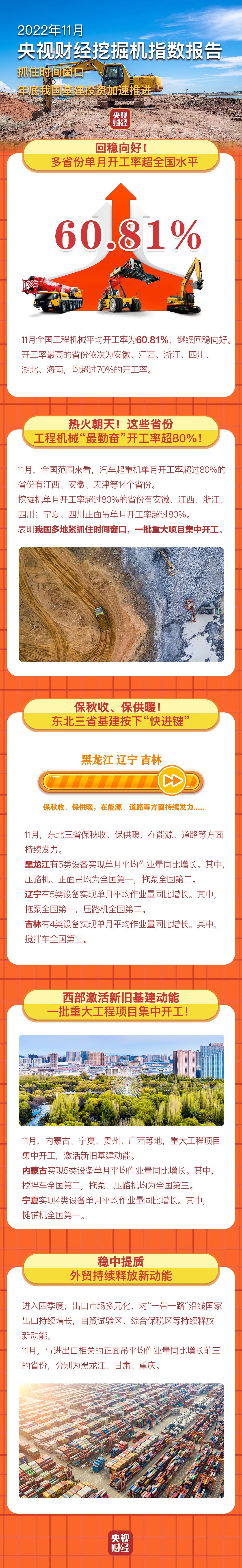11月全国工程机械平均开工率为60.81%,继续回稳向好。