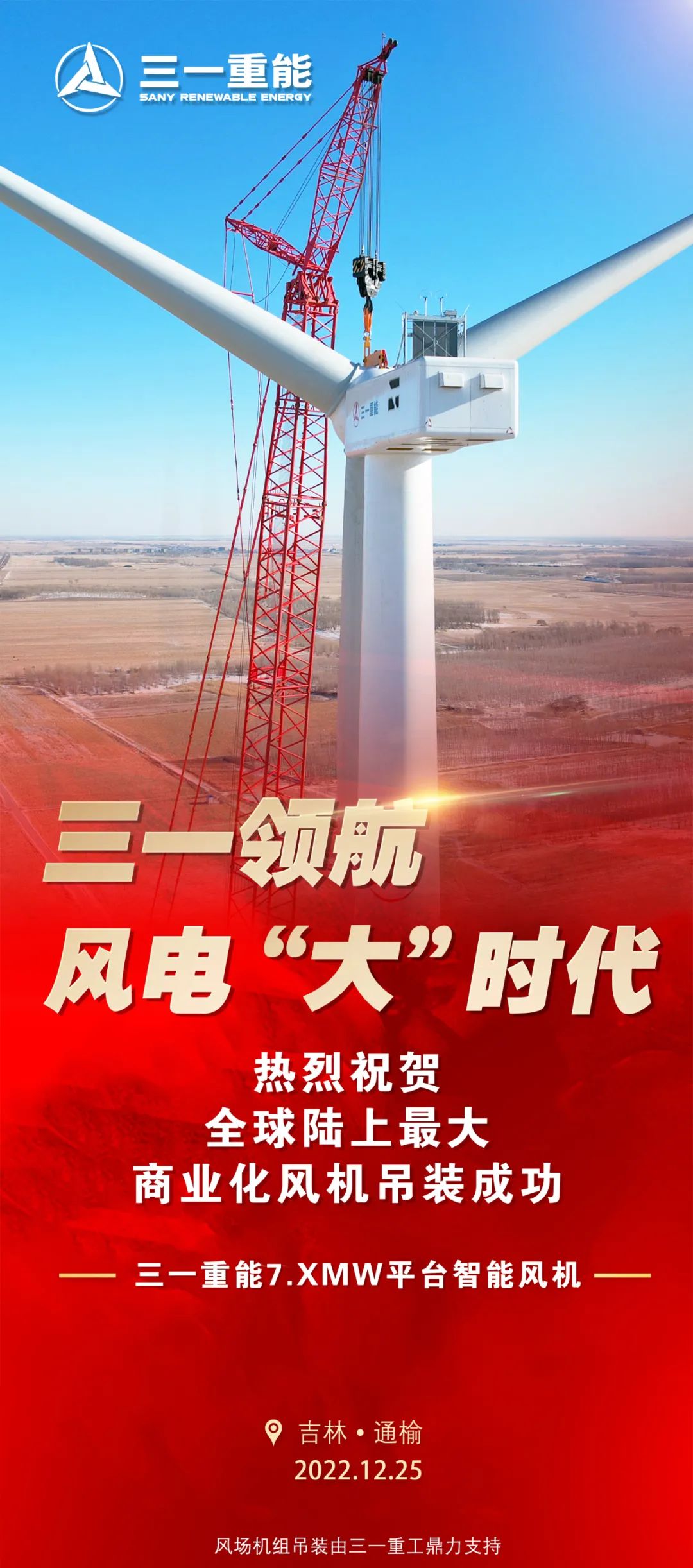 大兆瓦时代先行者,未来风电行业领航者。好体育投注网站重能7.XMW平台首台商业化风机成功吊装,标志着中国陆上风电正式进入“7.XMW时代”。未来,好体育投注网站重能将继续秉持“高、大、长、轻、智”的技术主线,不断加强技术创新,与客户亲密合作,共同引领大兆瓦时代、推动行业高品质发展!