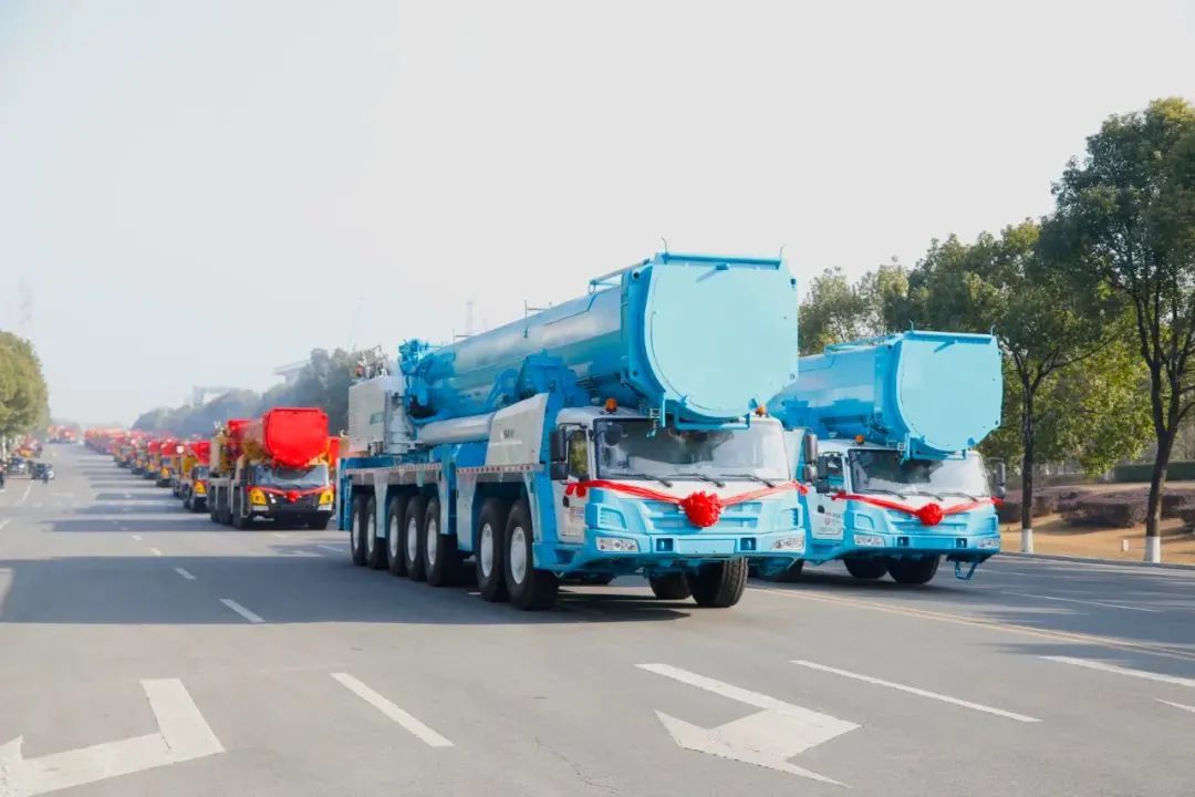 本次交付的机型涵盖轮式400吨、700吨、2400吨,履带800吨、1350吨,以及C系列二代平头塔机等多款明星机型。