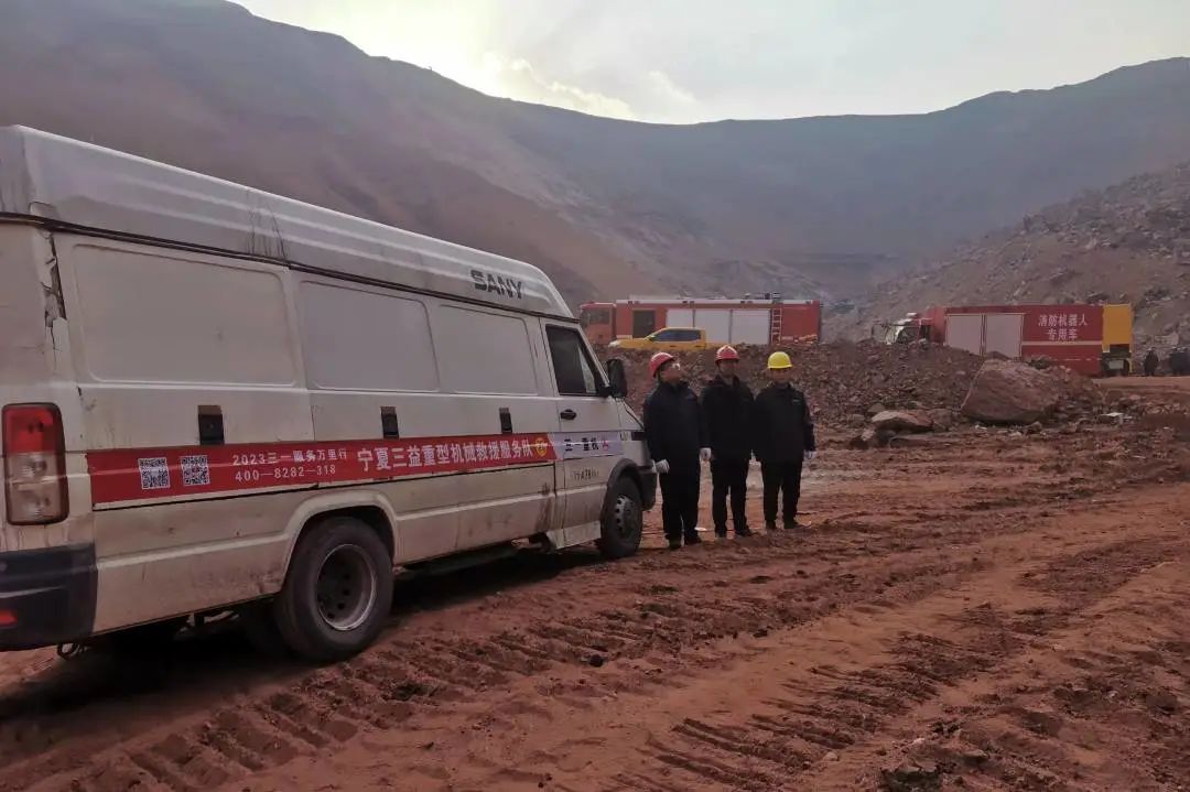 灾情发生后,距离最近的好体育投注网站重机代理商宁夏三益立即组织救援队20余人,紧急出动13台挖掘机,2辆皮卡和1辆多功能服务车支援灾区,并采购矿泉水、饼干、牛奶、方便面等物资第一时间驰援前线。