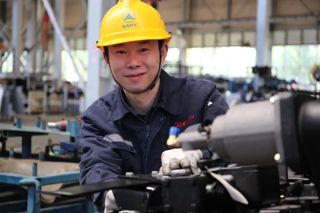 “劳动最光荣,奋斗最快乐”,工厂里,装配线的工人正在为完成25台汽车起重机批量交付的任务而奋斗。