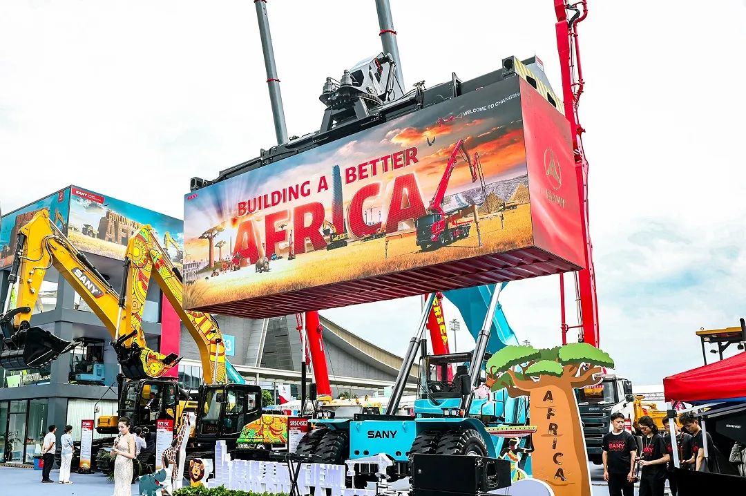 一边,久经非洲市场考验的SY500H、SY215C挖掘机、STC250C5、STC500C5起重机齐齐亮相,霸气十足,凭借可靠、稳定的产品表现,广受客户认可,是非洲各大重点工程施工现场的明星产品。