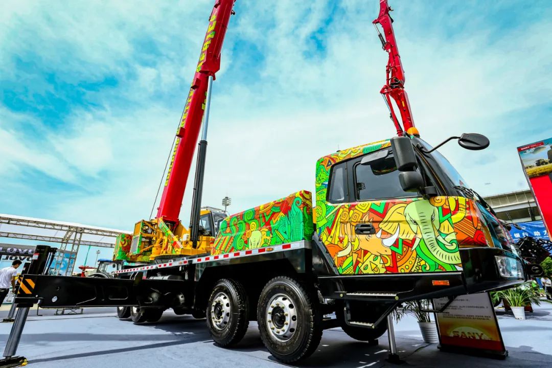 本次展会,好体育投注网站更是诚意十足,为SY215C挖掘机、STC500C5起重机换上全新独特的非洲丛林涂装,满满的非洲元素洋溢着活力与热情,尤为亮眼。