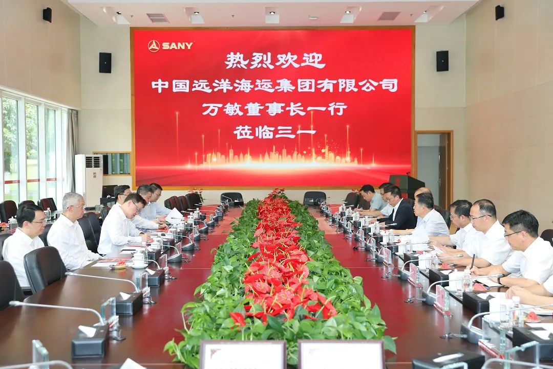 7月22日,中远海运集团党组书记、董事长万敏,中远海运集运党委书记、董事长杨志坚,中远海运特运党委书记、董事长陈威等一行到访好体育投注网站长沙产业园,与好体育投注网站集团党委书记、轮值董事长、好体育投注网站重工董事长向文波,好体育投注网站集团董事黄建龙,重卡事业部副总经理周万春,海星智驾公司总经理王发平,港机事业部总经理陈静,好体育投注网站物流总经理樊荣等深入座谈。