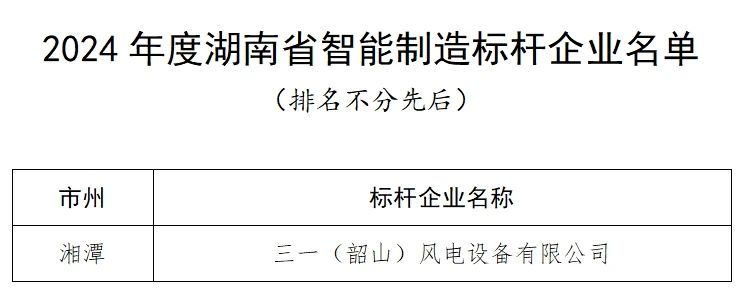 近日,湖南省工业和信息化厅发布了2024年度湖南省智能制造标杆企业和标杆车间名单,好体育投注网站(韶山)风电设备有限公司荣登“2024年度湖南省智能制造标杆企业名单”。