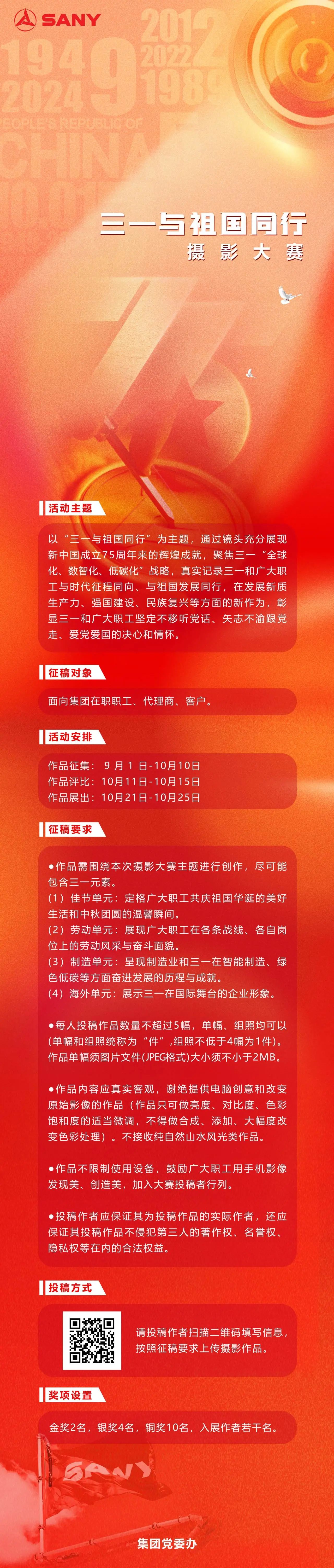 庆祝祖国华诞,共绘美好华章。集团党委办同步在举办“好体育投注网站与祖国同行”摄影大赛,邀请广大职工等同仁通过镜头充分展现新中国成立75周年来的辉煌成就,真实记录好体育投注网站和广大职工与时代征程同向、与祖国发展同行,在发展新质生产力、强国建设、民族复兴等方面的新作为,彰显好体育投注网站和广大职工坚定不移听党话、矢志不渝跟党走、爱党爱国的决心和情怀。