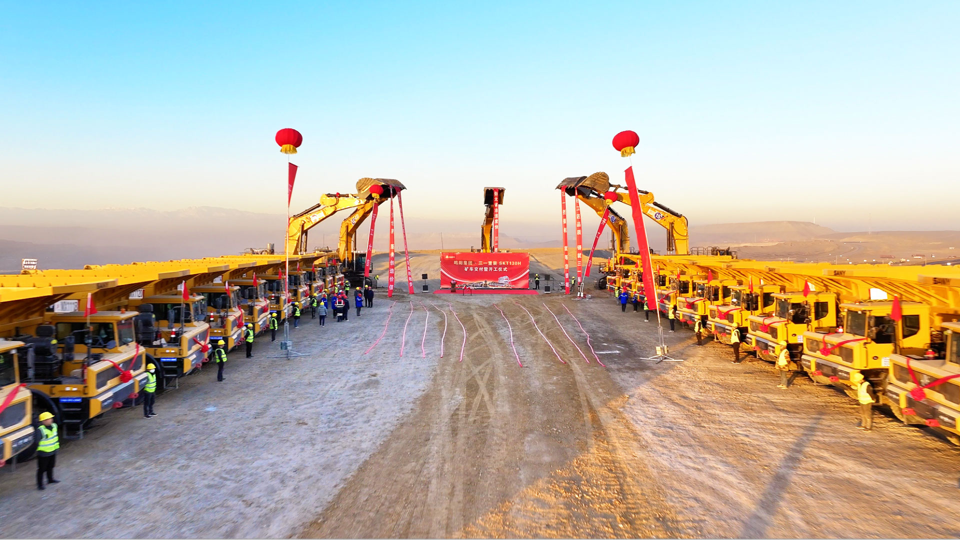 11月12日,好体育投注网站SKT130H矿车及SY1350H挖机交付仪式在新疆哈密伊吾县广汇白石湖露天矿广场隆重举行,鸣阳矿业集团项目经理柴小均、好体育投注网站重装新疆分公司总经理武会宗、新疆京泓大客户总监胡锋等主要领导出席了活动。仪式上,好体育投注网站共向鸣阳集团批量交付了72台SKT130H矿车和6台SY1350H挖机。