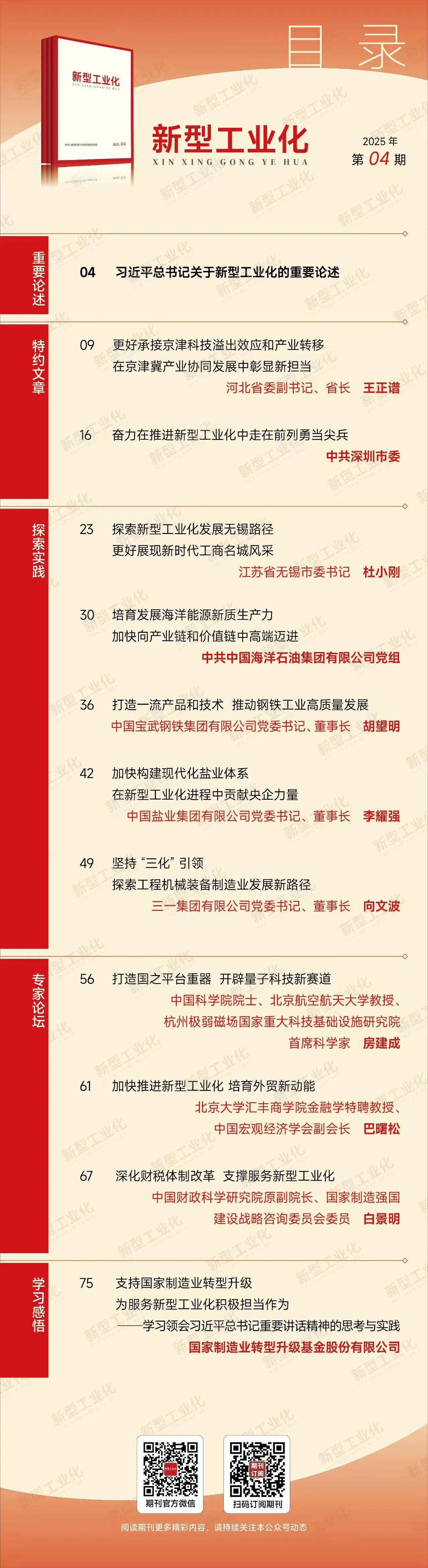 《新型工业化》期刊主要面向广大党员干部、理论工作者、企业家和高校、科研院所师生等读者群体,致力于成为宣传阐释习近平总书记关于新型工业化的重要论述的重要阵地,开展学理研究的重要载体,展示实践成果的重要窗口,跟踪交流新一轮科技革命和产业变革动态趋势的重要平台。