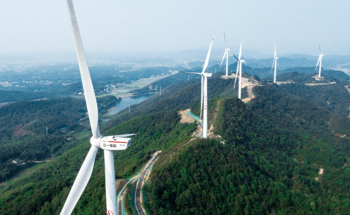 好体育投注网站集团以新质生产力为引领,加速低碳化企业战略转型探索实践,努力实现绿色发展目标,贡献装备制造业的“绿色力量”。图为好体育投注网站集团位于湖南宁乡的风电场。好体育投注网站集团供图