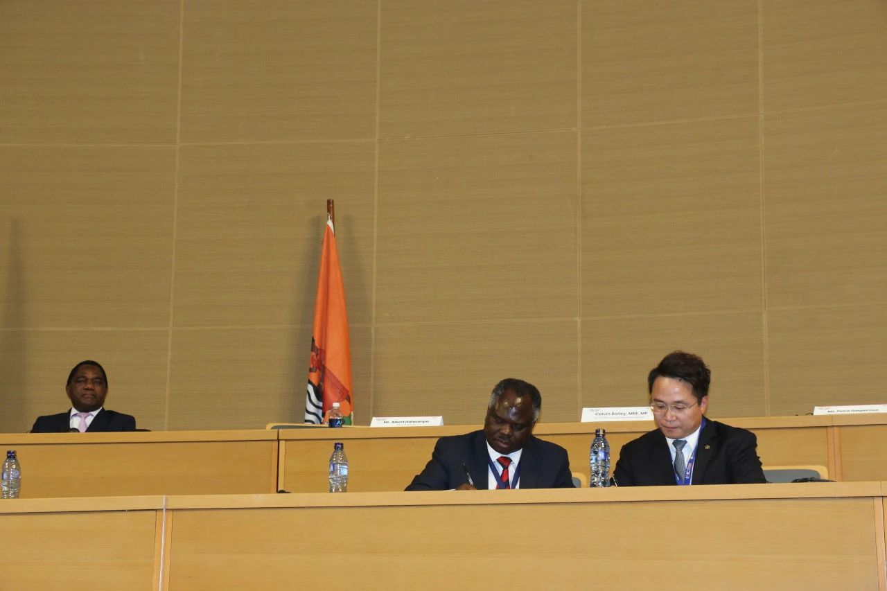 当天,在赞比亚总统哈凯恩德·希奇莱马见证下,郭瑞广与赞比亚投资发展署署长阿尔伯特·哈尔万帕签署绿色矿山合作谅解备忘录,双方将通过一体化微电网与新能源技术解决方案共同推动赞比亚矿山绿色转型。