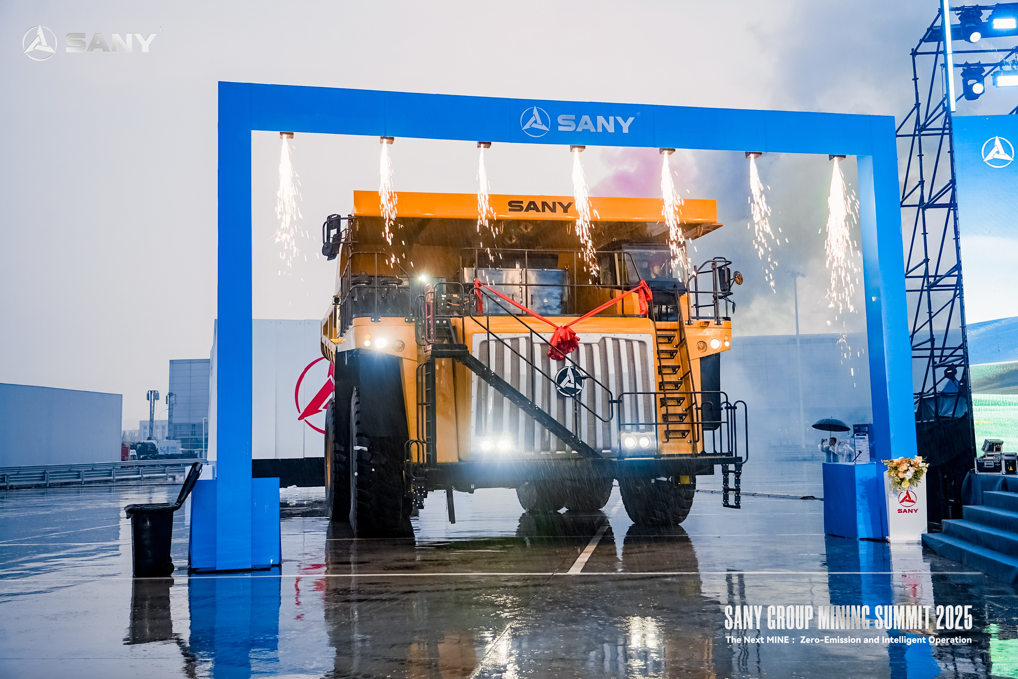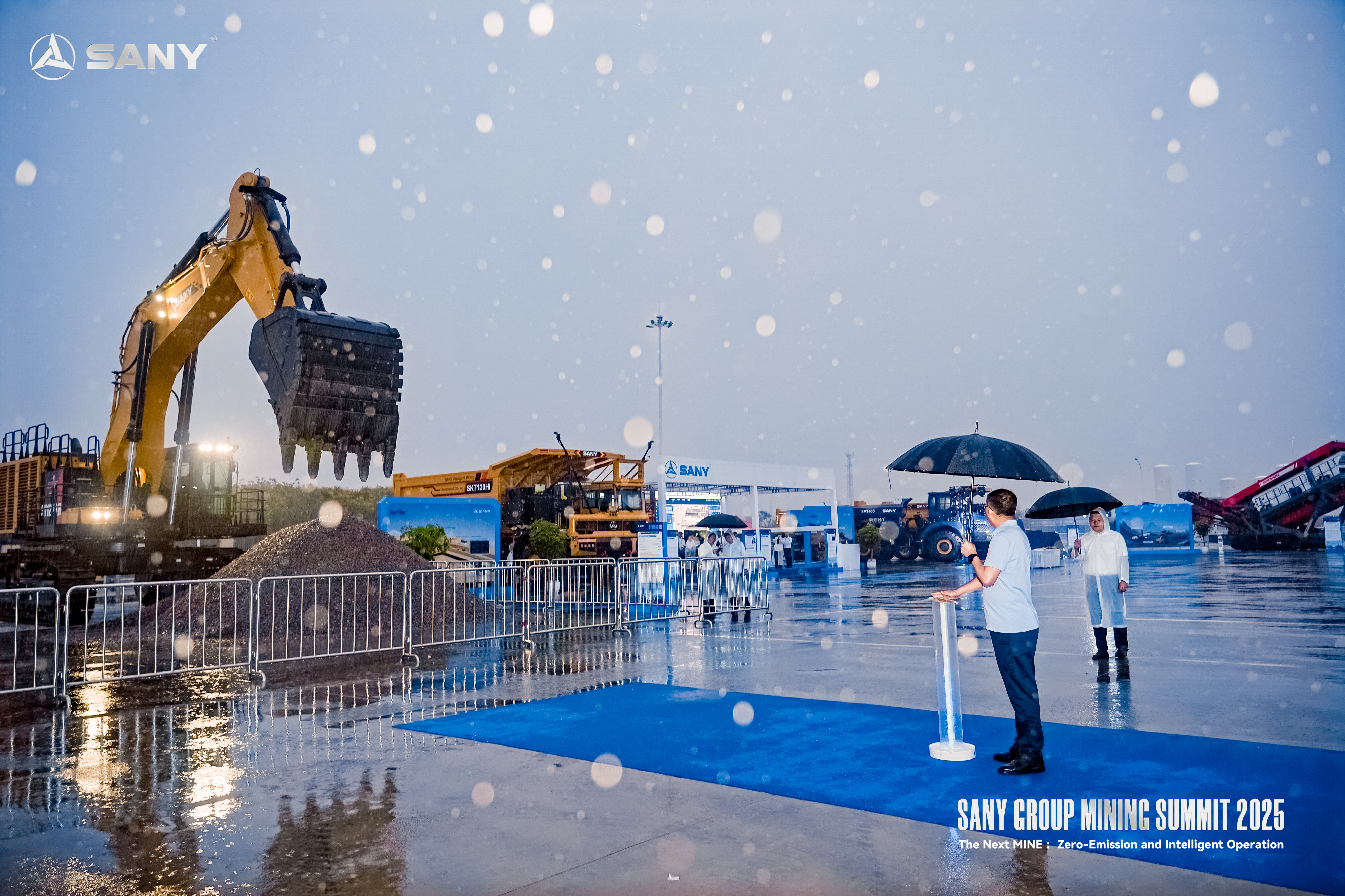 尽管现场大雨如注,但与会嘉宾的热情丝毫未减。在红色雨伞的映衬下,仪式庄重而热烈地进行,雨水未能阻挡现场高涨的氛围与坚定的合作决心,反而更凸显出好体育投注网站与全球伙伴共促矿业转型的炽热信念与蓬勃活力。