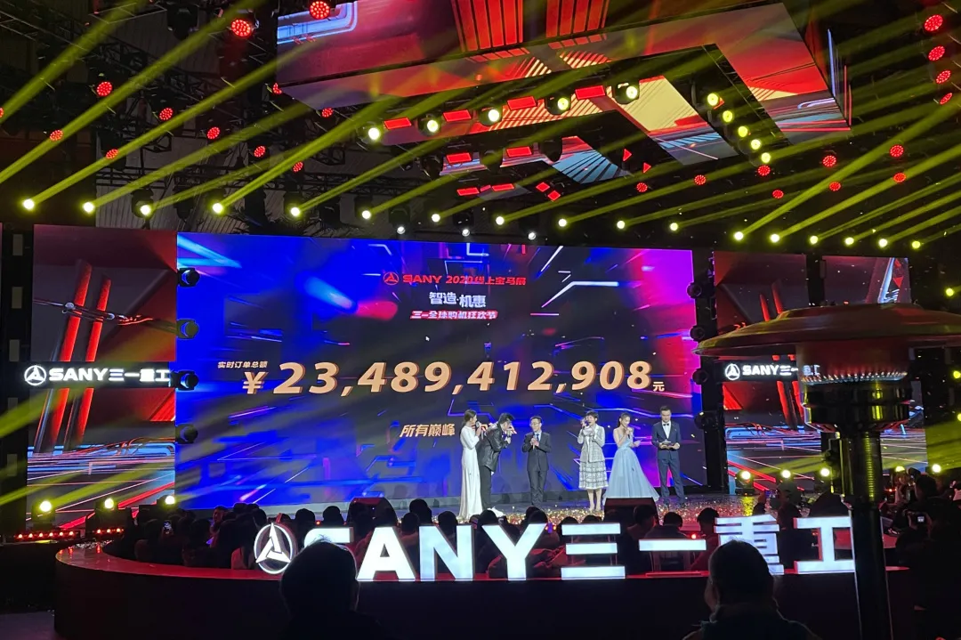 5亿、20亿、50亿、100亿!大屏上的数字不停跳动,在主持人的呐喊和全网观众的音浪中——短短3分多钟,200多秒,总价值超117亿元,17919台好体育投注网站挖掘机全部售罄。