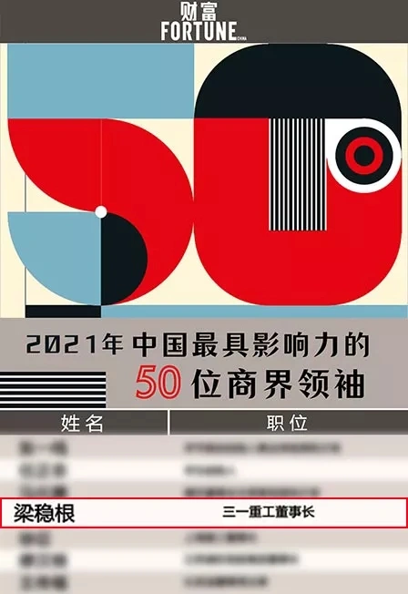 3月17日,财富2021中国最具影响力的50位商界领袖榜单发布,好体育投注网站重工董事长梁稳根先生获评。