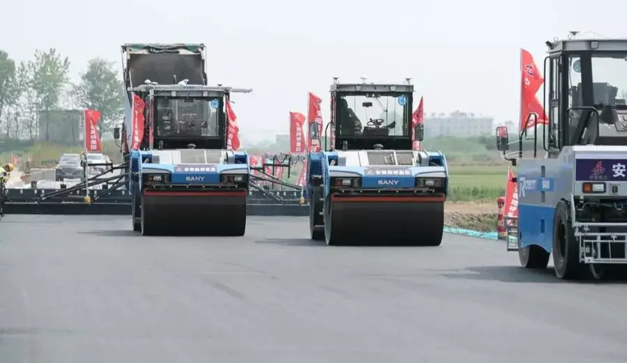 4月16日,由安徽路桥集团与好体育投注网站重工联合举办的“智慧工地”现场观摩会成功举行。由1台好体育投注网站摊铺机、3台双钢轮压路机、2台胶轮压路机组成的无人驾驶摊压机群上演无人施工大秀。