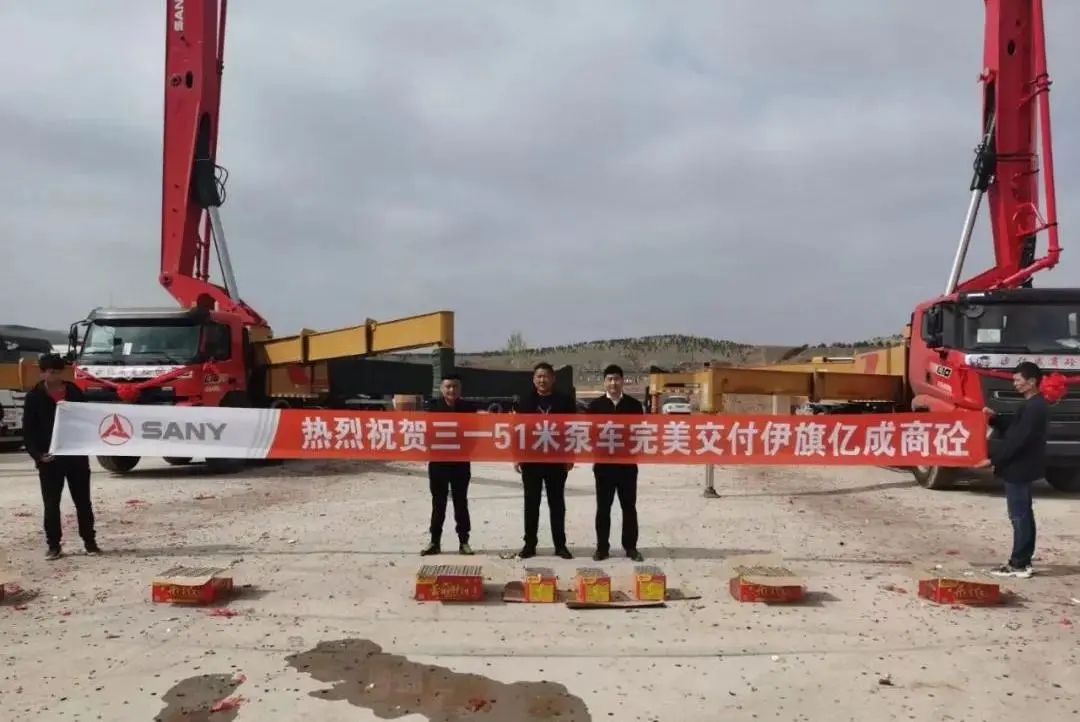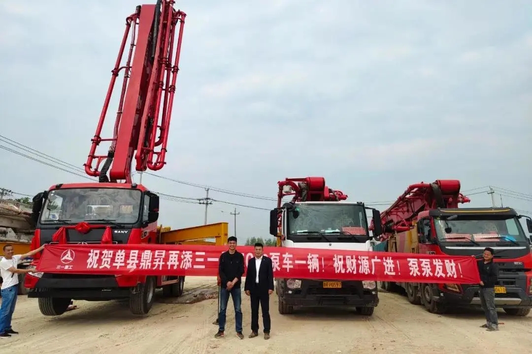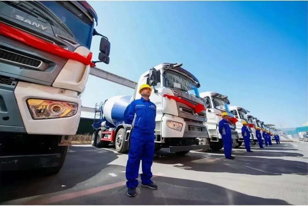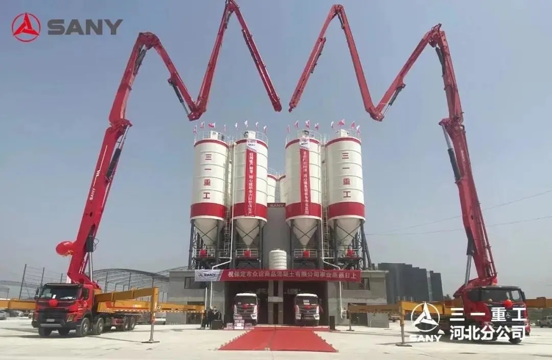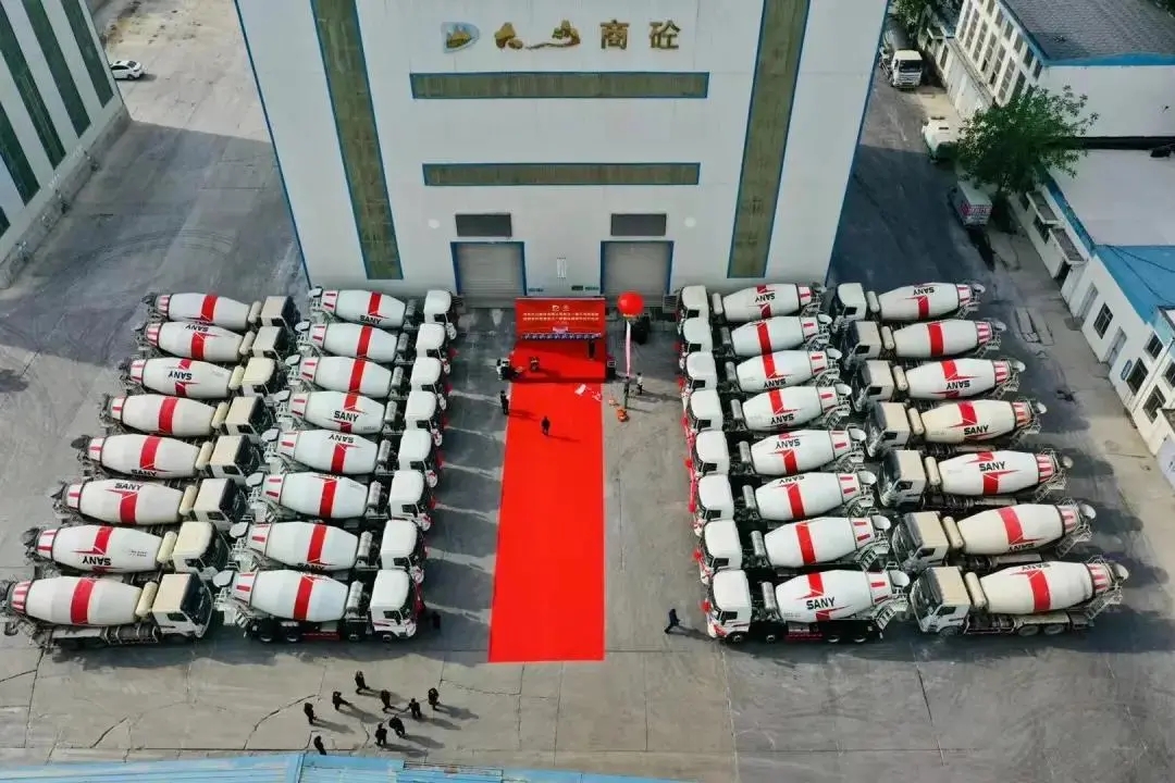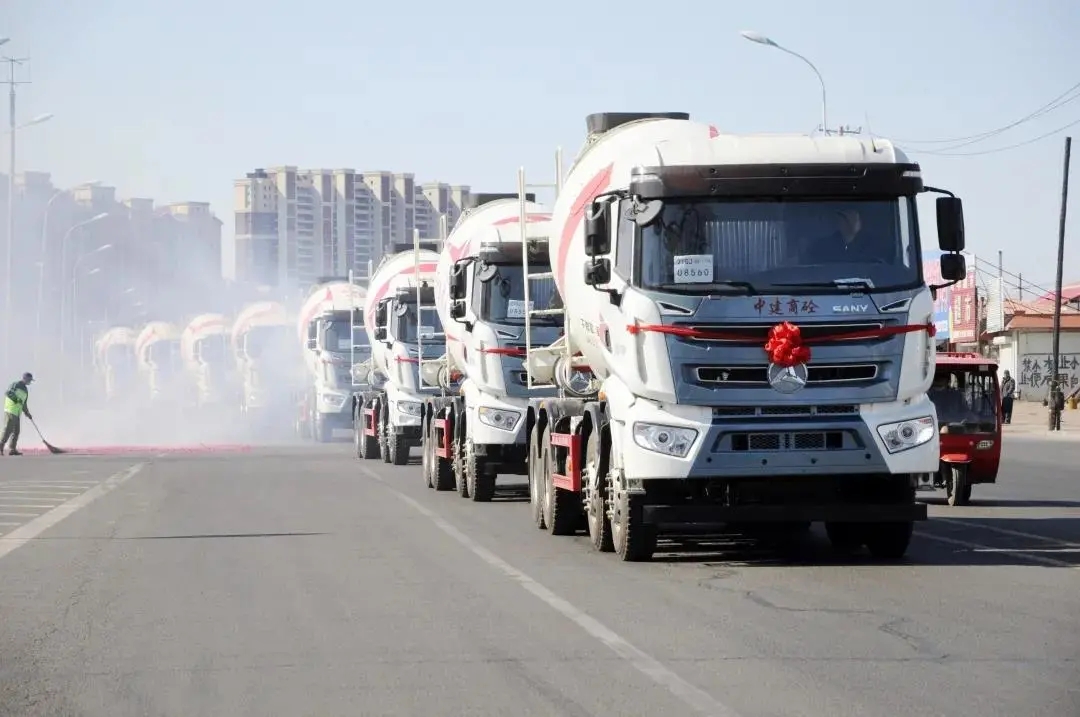 河北石家庄,数十台搅拌站、泵车、搅拌车等全套混凝土装备一次交付,助力燕赵大地火热建设。