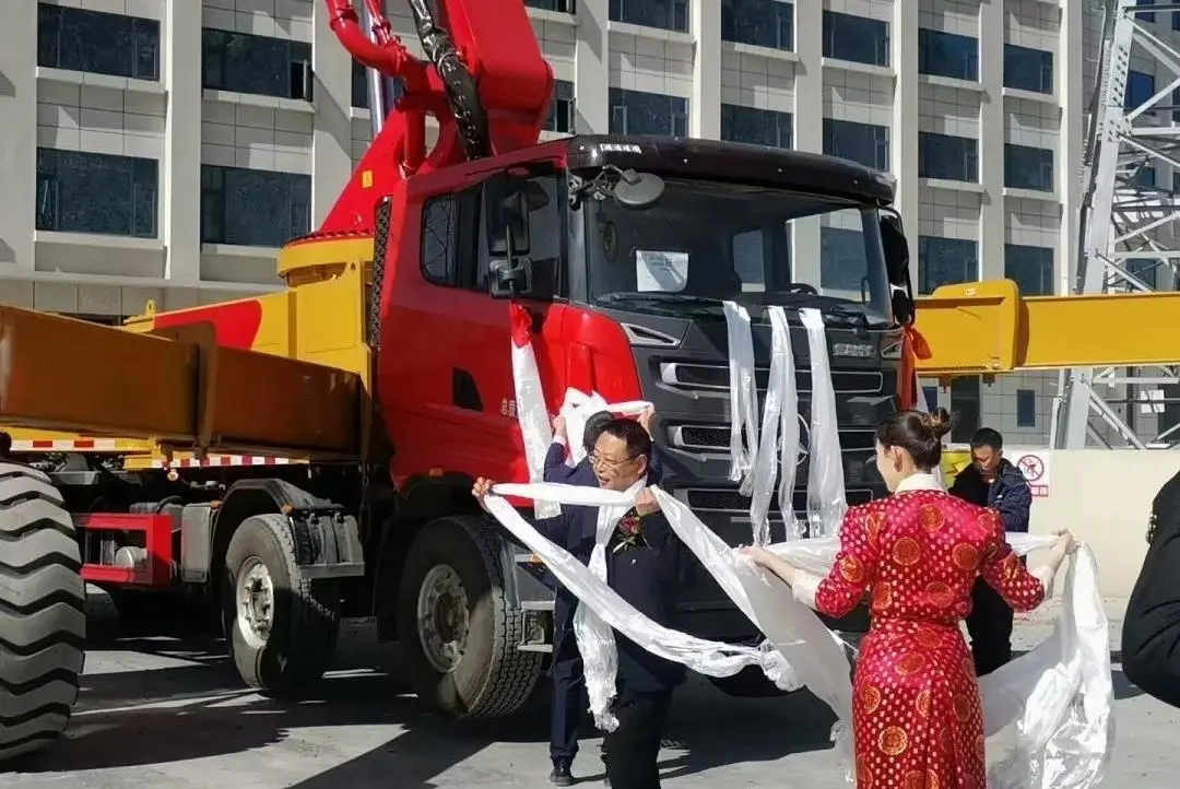 西藏拉萨,“高原第一泵”——好体育投注网站68米泵车完美交付,将极大助力当地经济建设。一条条洁白的哈达,传递当地民众的美好祝愿。