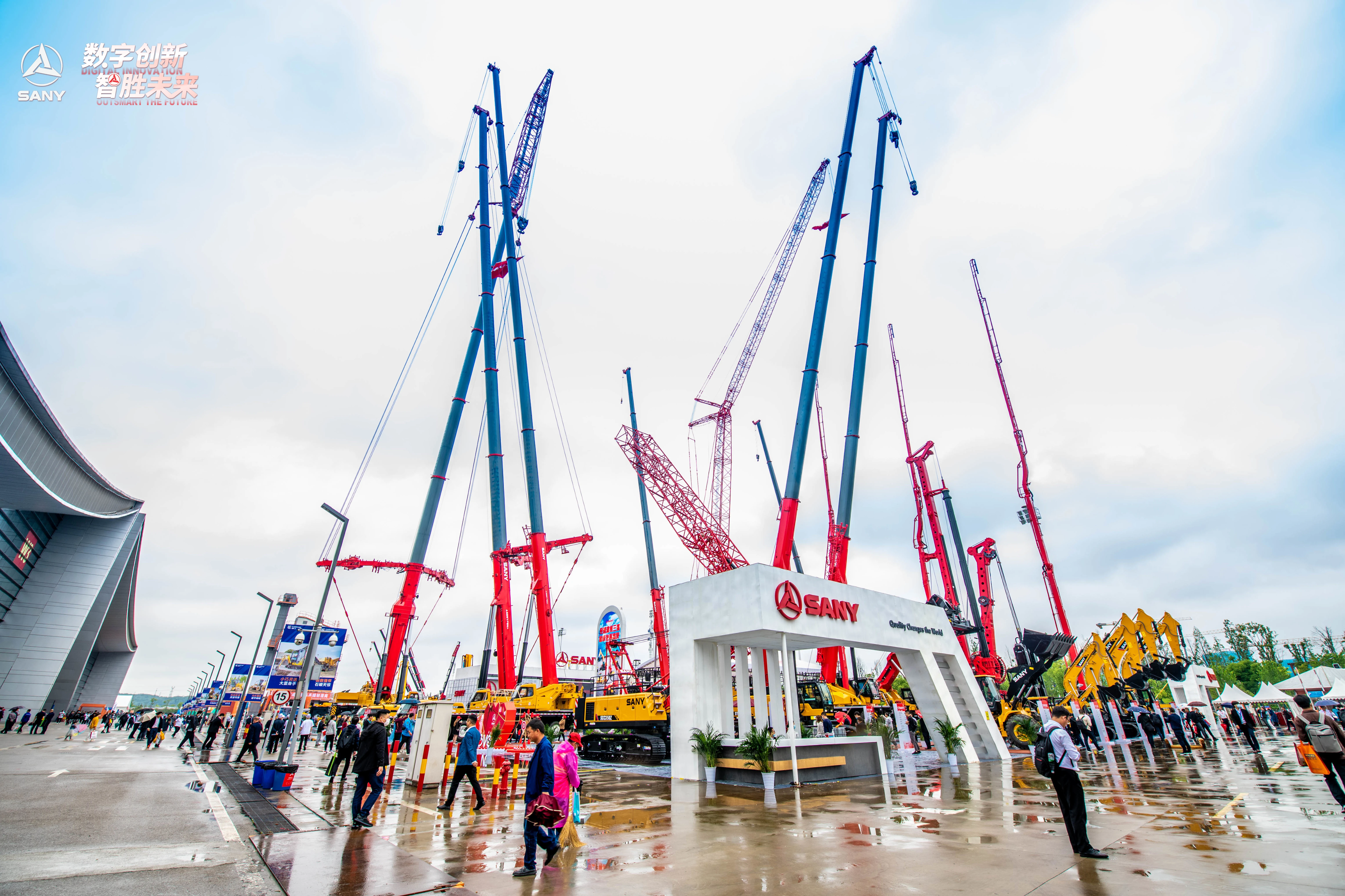 在外场,全长沙展最大、最高、最霸气的一台设备——1600吨全路面起重机的红色臂架直入云霄,以“领头大哥”的气质和绝对的竞争优势,撑起中国制造的高端形象。