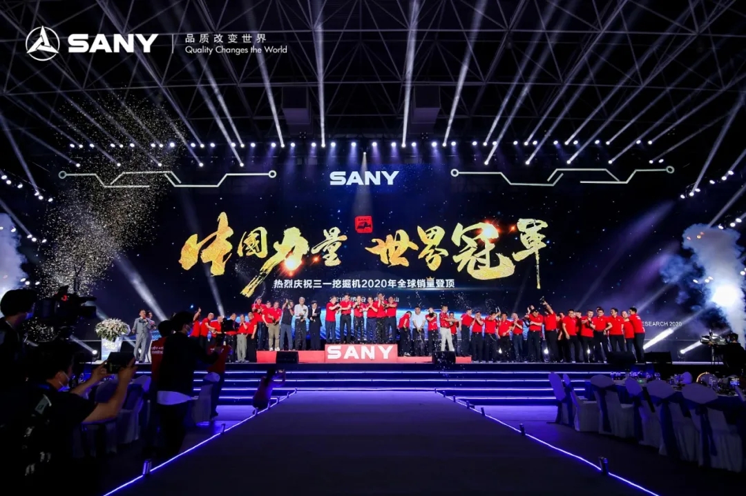 5月31日,中国昆山,“中国力量 世界冠军”好体育投注网站挖掘机全球销量登顶庆功晚会隆重举行。根据全球权威调研机构Off-Highway Research数据,2020年,好体育投注网站共销售98705台挖掘机,占据全球挖掘机市场15%的份额,夺得全球销冠!