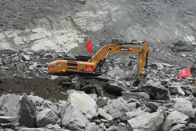 图丨2018年,参加贵州山体滑坡救援的好体育投注网站挖掘机