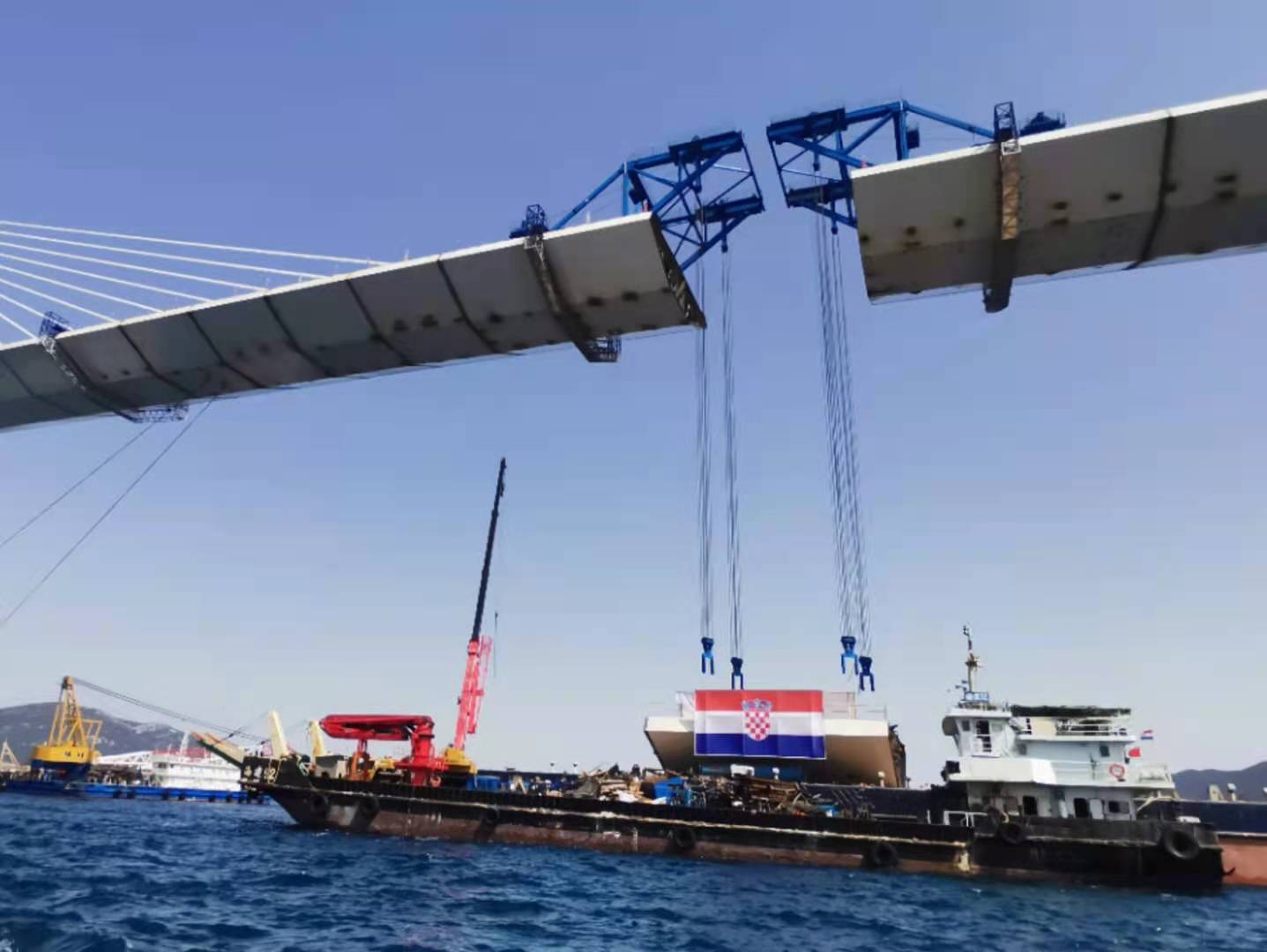 7月28日,在克罗地亚总理普连科维奇的见证下,在多家欧洲媒体的直播镜头中,随着最后一块钢箱梁由好体育投注网站起重机精确吊装至指定位置,宣告历时930天建设的佩列沙茨大桥成功合龙,克罗地亚民族20年的夙愿终得实现。