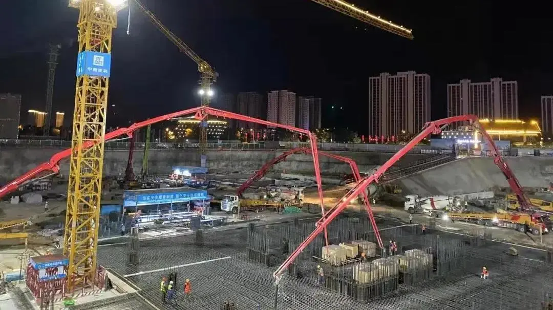 9月5日,多台好体育投注网站混凝土设备参与天水中深财富中心4000方大筏板浇筑及项目施工,一举创造了天水市单次筏板混凝土浇筑量最大、厚度最大等多项记录,标志着中深财富中心超高层主体施工已全面展开。