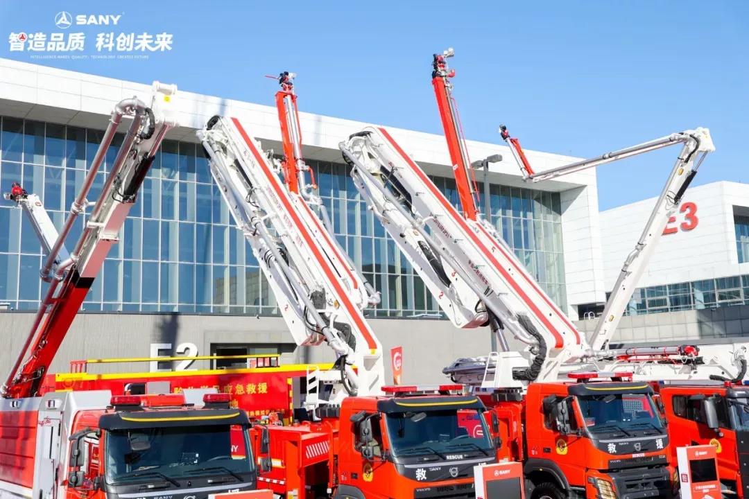 全球作业高度最高的65米大跨度举高喷射消防车、全球首创的41米固液气多剂联用举高喷射消防车、全球首台遥控无人驾驶举高喷射消防车等多款全球“首台、首创”悉数亮相,受到业界巨大关注。