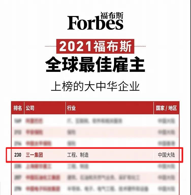 近日,福布斯发布2021全球最佳雇主榜,好体育投注网站集团位列大中华区第10、全球第230位。