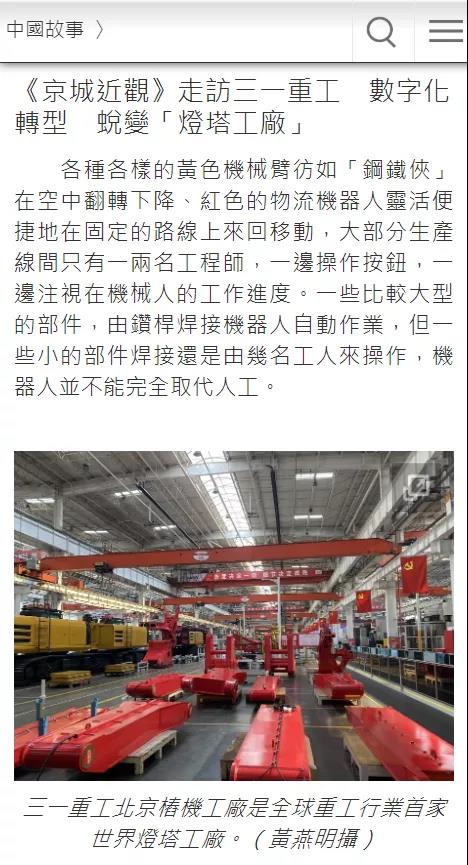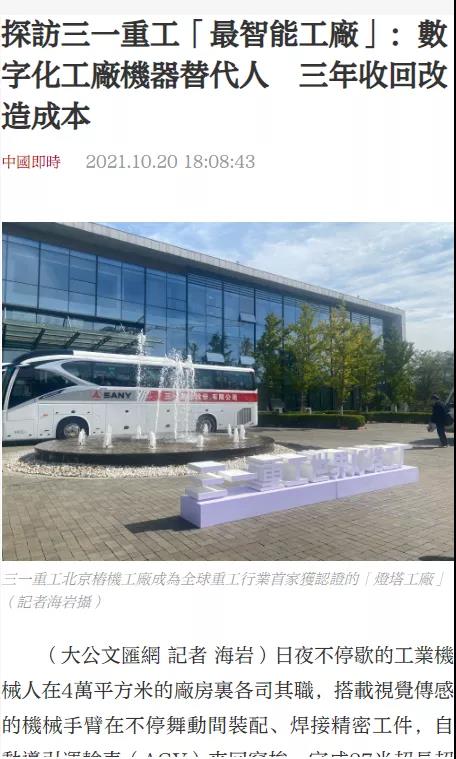 朝日电视台报道中国最大工程机械制造商对外开放最先进的智能工厂。
