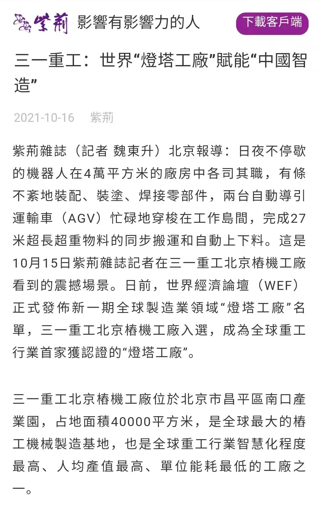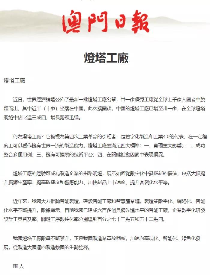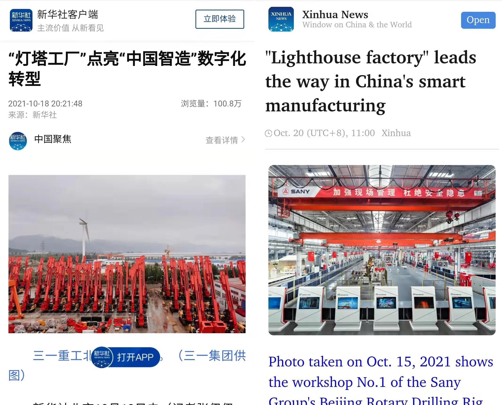 新华社第一时间中英双语报道,向全世界介绍好体育投注网站桩机“灯塔工厂”。