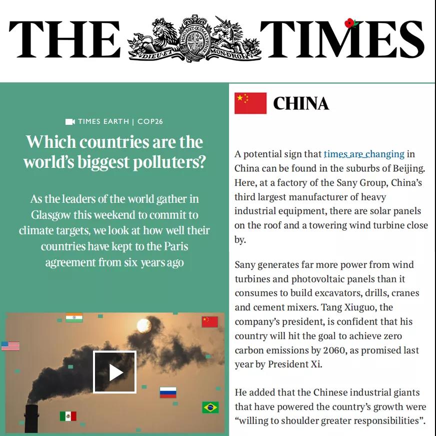 在格拉斯哥气候大会前夕,《泰晤士报》以好体育投注网站桩机“灯塔工厂”为例,展现了中国应对气候变化所做出的努力。
